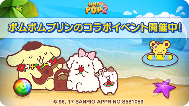LINE POP2 コラボ 2017年06月29日 【LINE POP2】「ポムポムプリン」登場!限定ミニモンやブロック探し、コラボイベントを楽しもう! サンリオの大人気キャラクター「ポムポムプリン」が、「LINE POP2」に登場です!「ポムポムプリン」とお友だちの「マカロン」「マフィン」「スコーン」たちの限定ミニモンや、ブロックを集めたり、「ポムポムプリン」たちとランキング競争をして遊びましょう♪