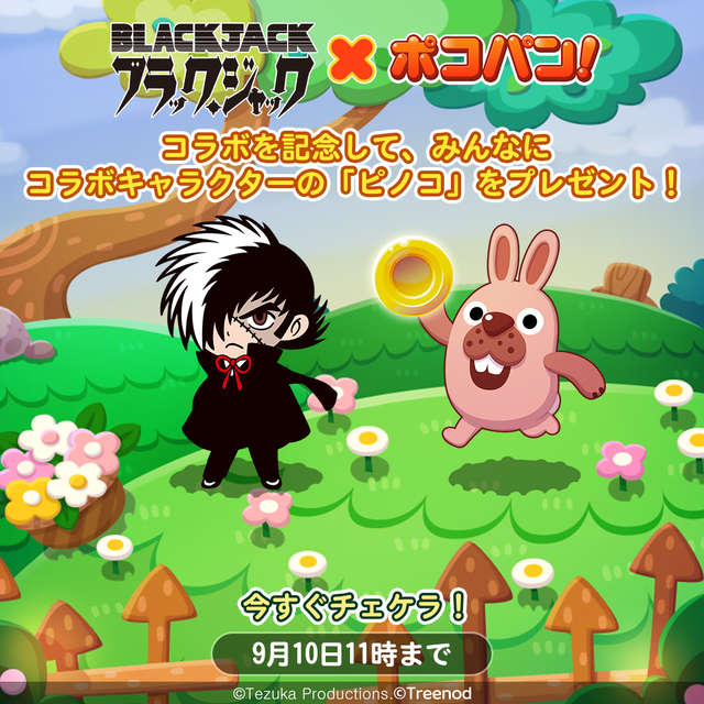 LINE ポコパン コラボ 2019年08月27日 【LINE ポコパン】『ブラック・ジャック』とコラボレーションを開始! 「LINE ポコパン」と『ブラック・ジャック』のコラボレーションを開始!「ブラック・ジャック」「ピノコ」「ドクター・キリコ」「本間丈太郎」など大人気キャラクターが登場するのでどうぞお楽しみに☆【期間】2019年8月27日(火)11:00 ~ 9月10日(火)11:00■ ログインしたユ