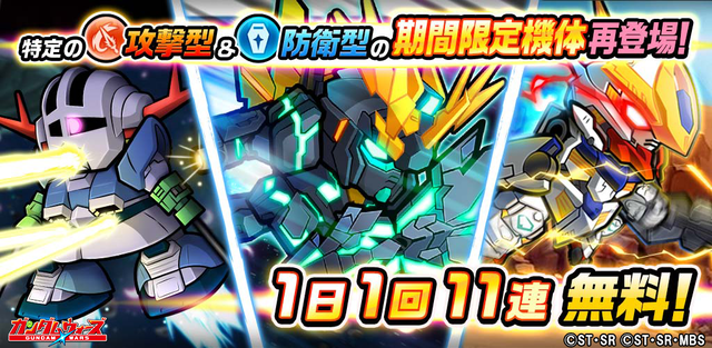 LINE: ガンダム ウォーズ キャンペーン 2020年12月26日 【LINE: ガンダム ウォーズ】年末年始特別キャンペーン開催! ニュータイプ★突撃バトル「LINE: ガンダム ウォーズ」では、年末年始特別キャンペーンを開催中!1日1回11連無料ガシャの開催や、特別配信番組に加え、年末年始のお得なイベントが盛りだくさんです!ぜひ、チェックしてくださいね♪■年末年始記念!1日1回11連無料ガシャ開催