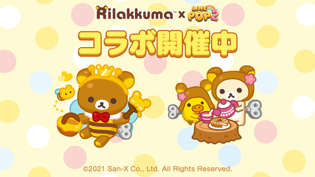 LINE POP2 コラボ 2021年04月23日 【LINE POP2】『リラックマ』がコラボレーション開始! 6角形パズルゲーム「LINE POP2」と、『リラックマ』がコラボレーションを開始します。本コラボレーションでは、プレイを助けてくれる限定コラボミニモンとして全6種「リラックマ」「コリラックマ」「コリラックマ&キイロイトリ」「おんがくリラックマ」「ミツバチのリラック