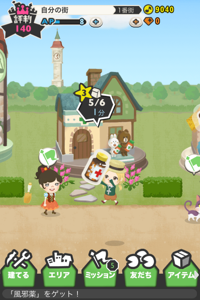 コーディネイトが決まったら早速お出かけ!LINEログインをすることで、LINEの友だちとお互いの街を訪問してお手伝いをし合うことができます。