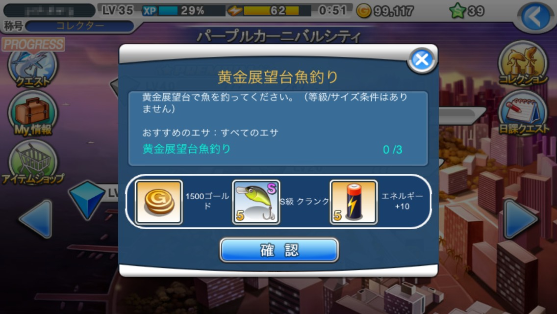 「夜釣り」が楽しめる新マップ「パープルカーニバルシティ」が登場しました! まずは、レベル10から入場できる「ミッドナイトポート」にチャレンジしてみてください。