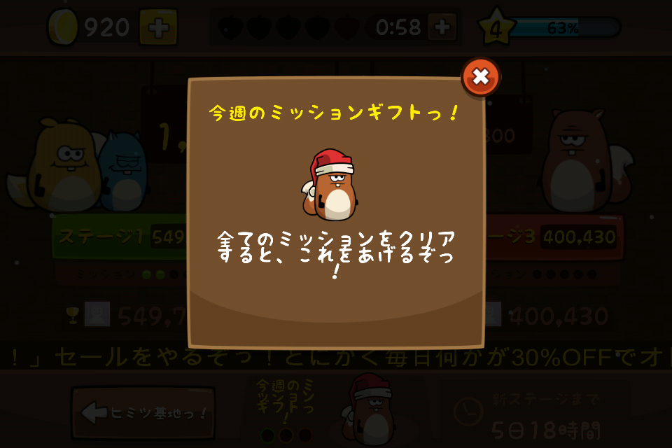 クリスマスステージやPINKY、ウィークリーミッションの登場でますます賑やかになりました。この冬、「LINEドングリっス」でいっぱい遊んでくださいね。