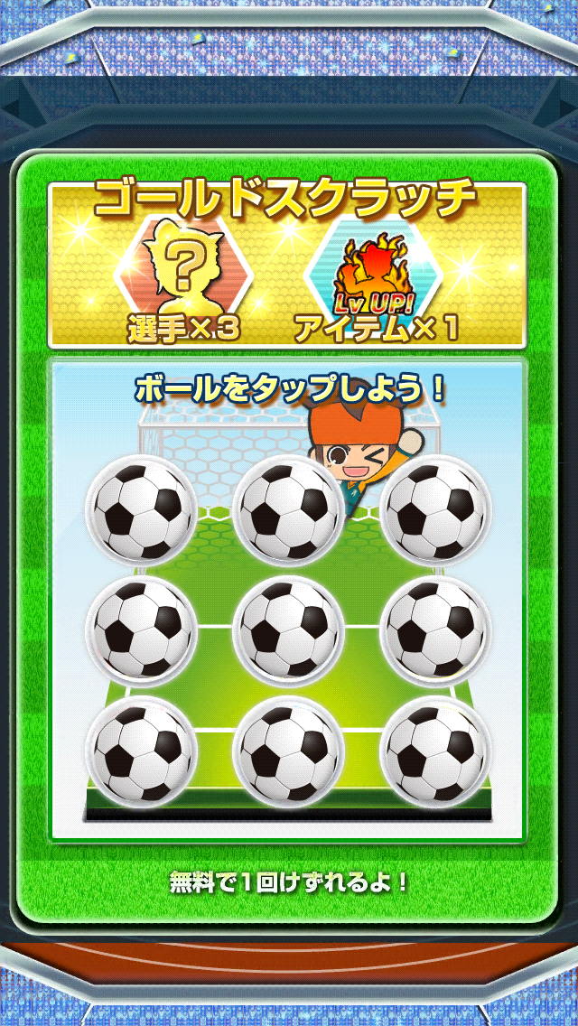 試合に勝利するとスクラッチカードがもらえて、当たりが出ると相手チームの選手を仲間にすることや自分のチームの選手のレベルを上げるアイテムをGET することができます。さらにチームのメンバーを育てたり入れ替えたりして、戦略的に楽しむこともできます。