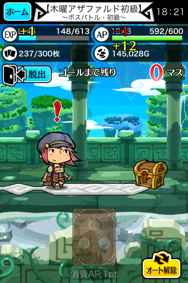 ログイン時に1日1回だけ挑戦できる「お宝チャンスバトル」。そこで宝箱型のモンスター「アケローン」をみんなと一緒に叩けば、レアなアイテムがもらえることも。今回、ゲームを初めてくればたかりの人に報酬を特別設定!かわいい・つよい・かっこいい素敵なカードが出現するかも!?ぜひ毎日チャレンジしてくださいね。