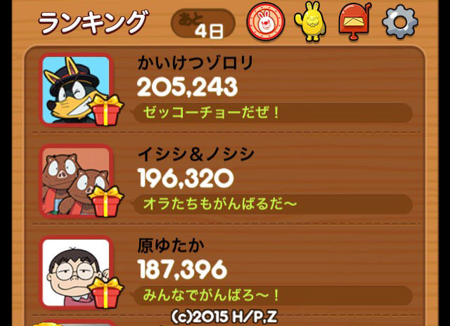 来週火曜日から、ゾロリのキャラクターたちが、友だちランキングに登場します!ランキングリセット時点までに勝利すると豪華プレゼントがもらえますよ♪