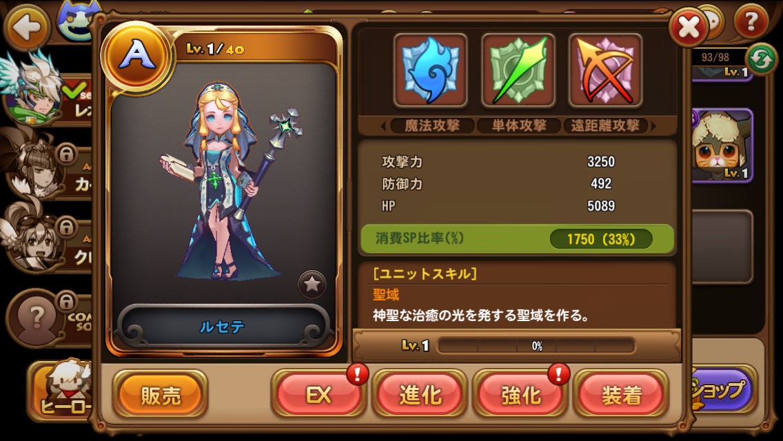 (1)回復スキルを持つ「聖女ルセテ」(最終進化S等級)を一定確率で獲得できる降臨ダンジョン
