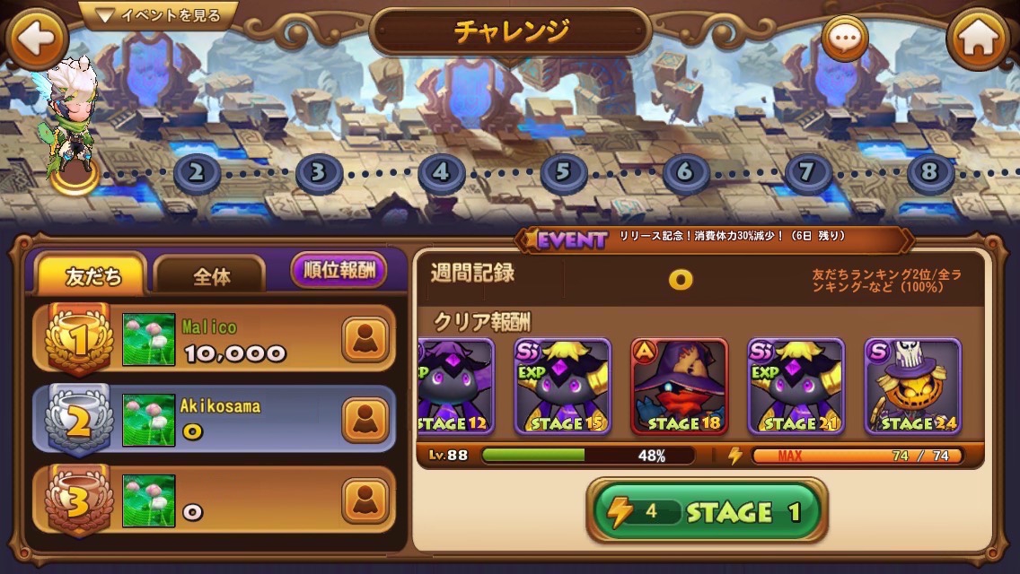 期間中、下記の特定ダンジョン挑戦時の消費体力が30%オフになります!