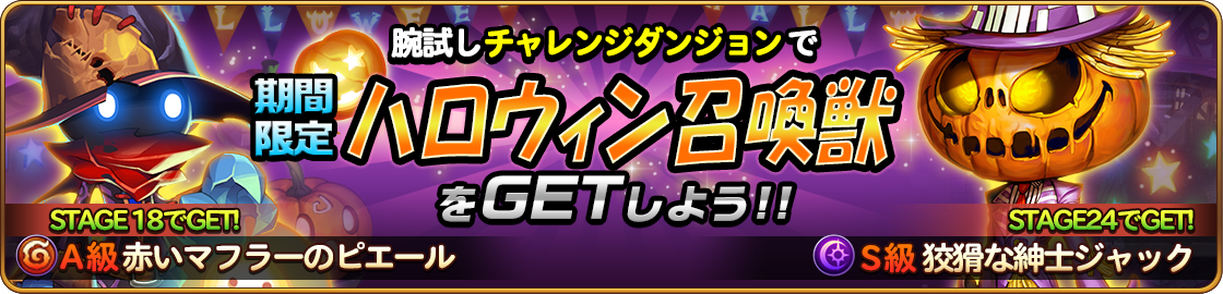 ハロウィン限定!一定ステージクリアで「赤いマフラーのピエール」と「狡猾な紳士ジャック」が獲得確定!