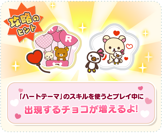 さまざまなスキルの中でも、ハートテーマのバレンタイン限定スキル『ハート風船』『リボンペンギン』が特におすすめ!限定スキルを使うと、プレイ中に出現するチョコレートの数が増えるので、1回のプレイでたくさん集めやすくなります♪