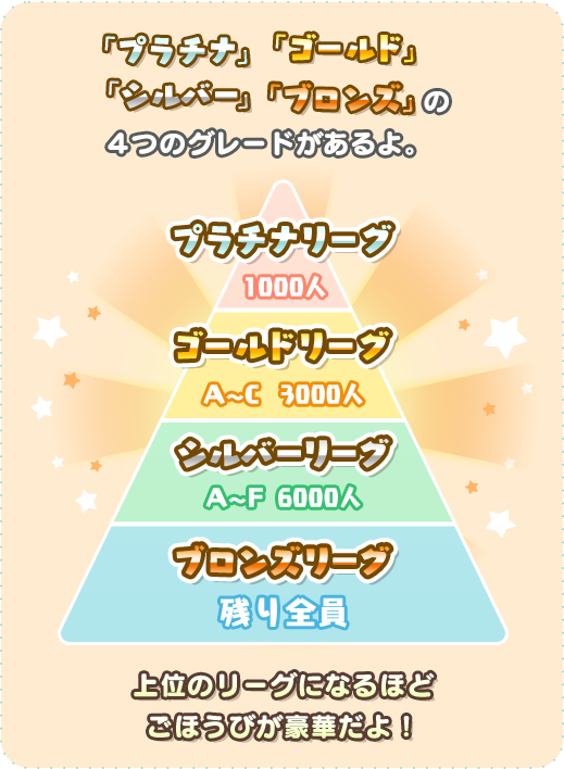 上位のリーグになるほどランキングでもらえるごほうびが豪華になりますよ♪
