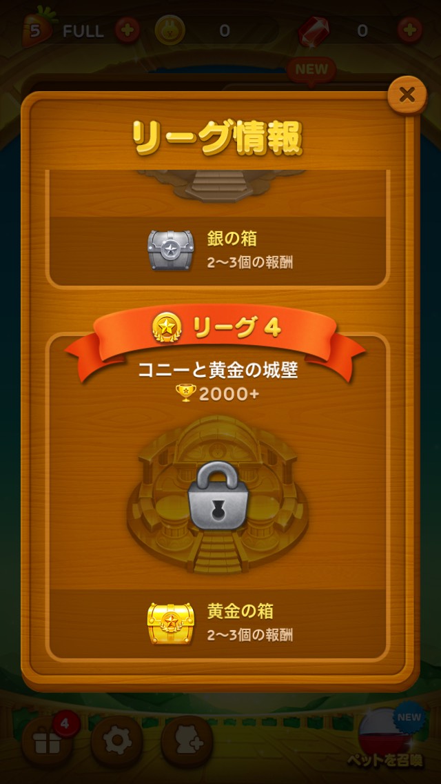 トロフィーを一定数集めると、所属リーグがランクアップします!また、宝箱ポイントを集めると宝箱をオープンしてアイテムを獲得できます。