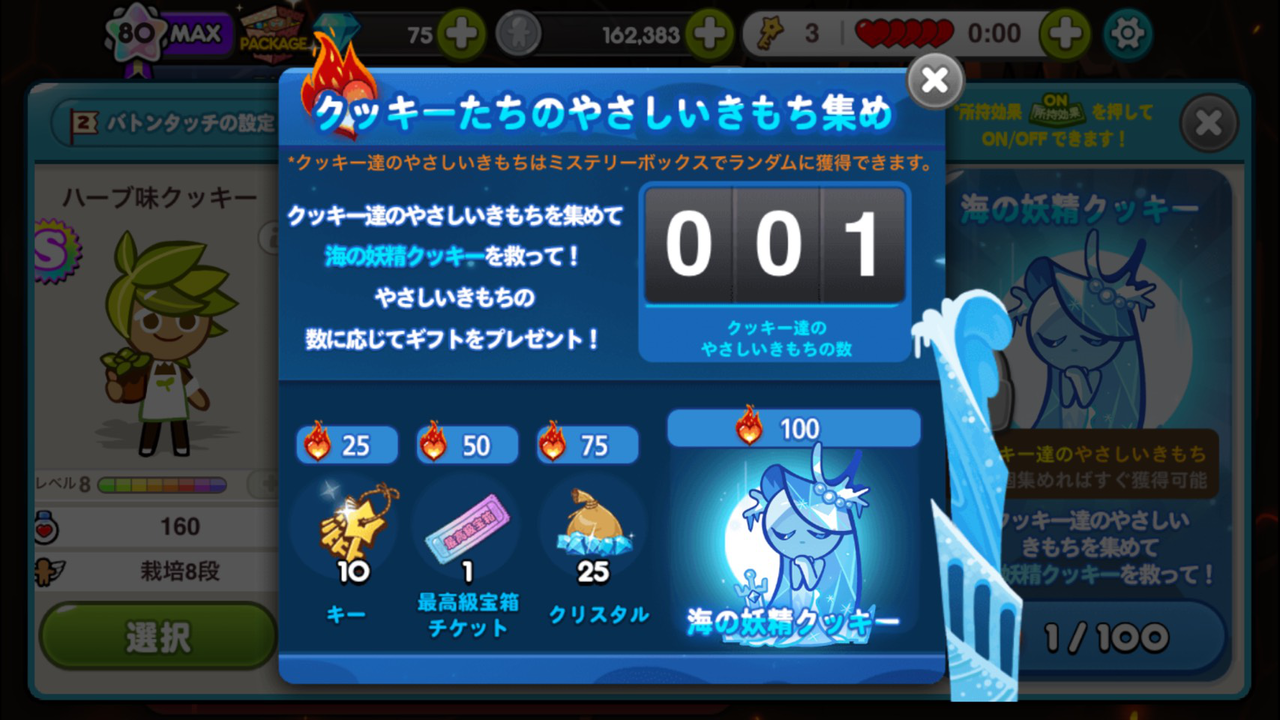 ただし「海の妖精クッキー」は、凍っているため目覚めにはまだ時間がかかるようです。プレイをしながら“クッキーたちのやさしいきもち”を集めて、彼女を目覚めさせましょう!