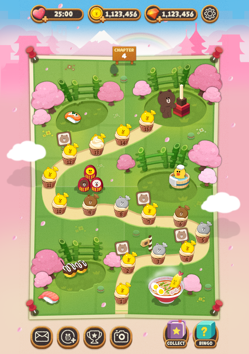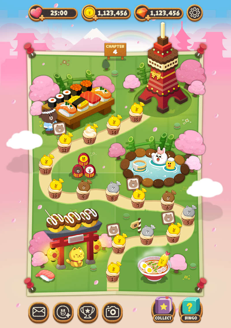 プレイ画面もキャラクターたちもシリーズ史上最高にキュートにパワーアップ♪さらに「デコ」集めの要素も加わり、パズルをしながらマップを自分好みにアレンジしてお楽しみいただけます。