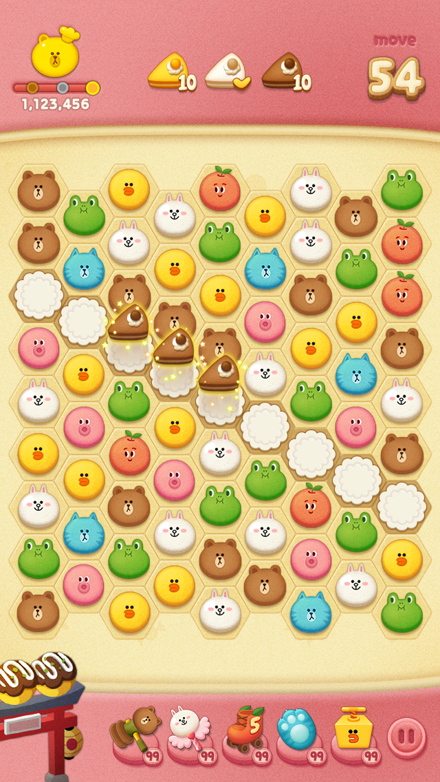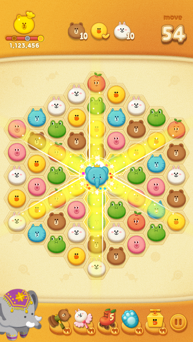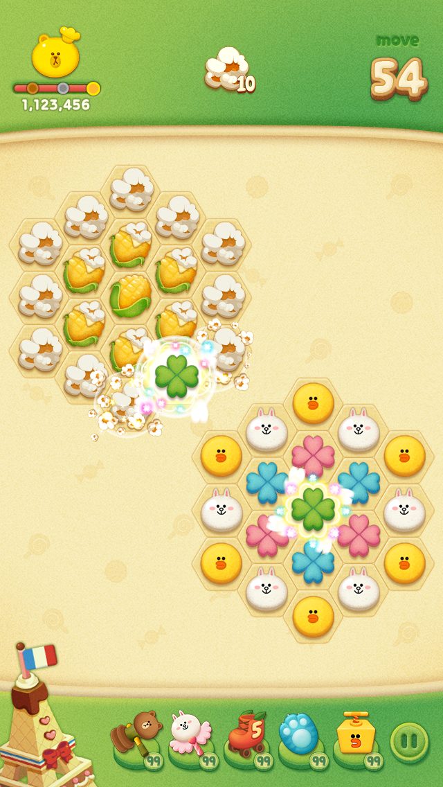 交差させるとお邪魔ブロックを消してくれる「クローバー」や、6方向に光ってブロックを消す「ぞうさん」など、新しい特殊ブロックもたくさん登場!プレイ中の演出もより華やかに、甘くなりました♪