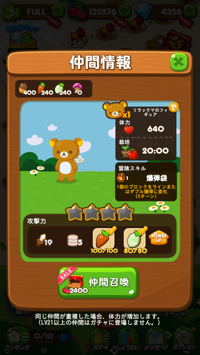 期間限定でガチャからピンクがかわいい「桜リラックマのフィギュア」と「ポコタ着ぐるみのフィギュア」が登場します。通常ステージを30までクリアしたユーザーが対象となります。