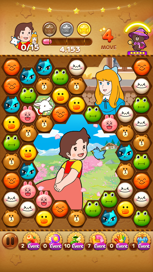イベントステージは全部で5個。各ステージに『アルプスの少女ハイジ』のキャラクターたちが隠れているので、ブロックを消して探し出しましょう。見事見つけ出し、全てのステージをクリアすると、コラボ限定ミニモン「ヨーゼフ」をGET!