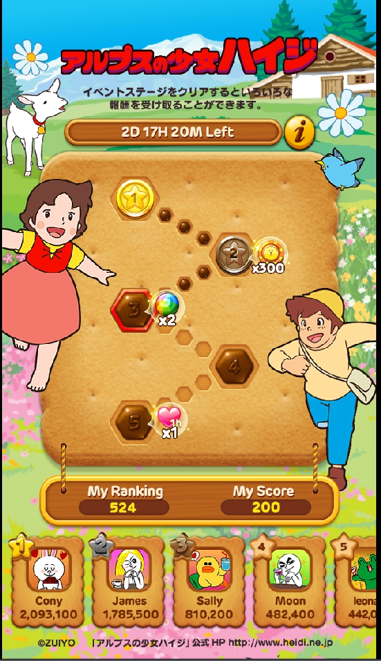 ランキング画面に『アルプスの少女ハイジ』のキャラクターたちが登場します!