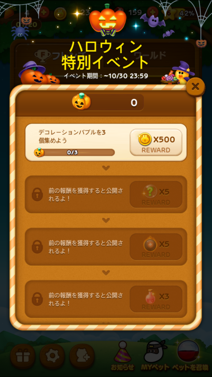 ※獲得したかぼちゃバブルはイベント終了後にすべて消えてしまいます