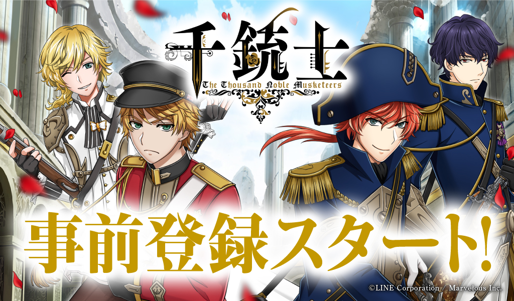 詳細は、「千銃士」事前登録サイト(https://noble.game.line.me/special/pre/)をご確認ください。