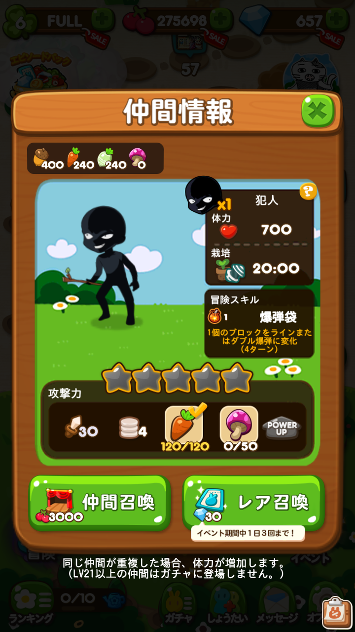 ダイヤや★4以上確定ガチャチケット、ゲーム内アイテムとランキング画面の下でコロコロ転がるおもちゃ「名探偵」ポココロが入ったパッケージを販売します。お得がいっぱい詰まっているのでこの機会に手に入れてください!