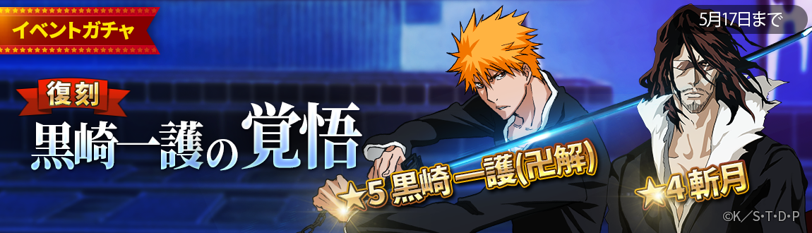 ガチャイベント「黒崎一護の覚悟」を復刻開催します!イベントガチャでは☆5「黒崎 一護(卍解)」、☆4「斬月」の排出確率アップ!