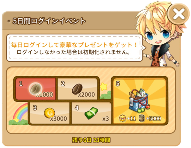 ■5日間ログインイベントは合計2回! 達成ボーナスは柄違いの買い物かごのキャニスター