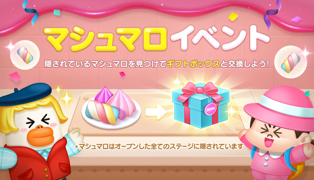 期間中にレストランや農園ステージをクリアしてマシュマロを見つけましょう。マシュマロを見つけた数によって、コインやルビーなど様々なアイテムがもらえます!