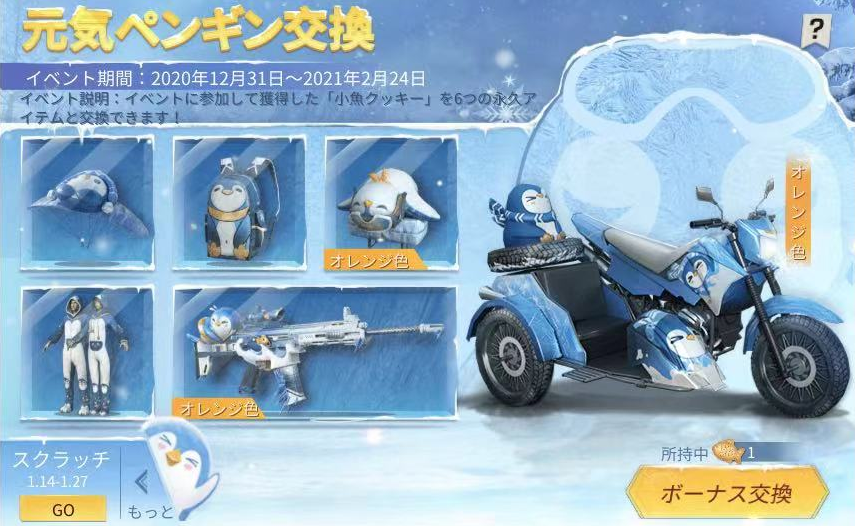 連続ログインしたら、限定ペンギンアイテムと交換できます!<【荒野寿司屋】イベント>