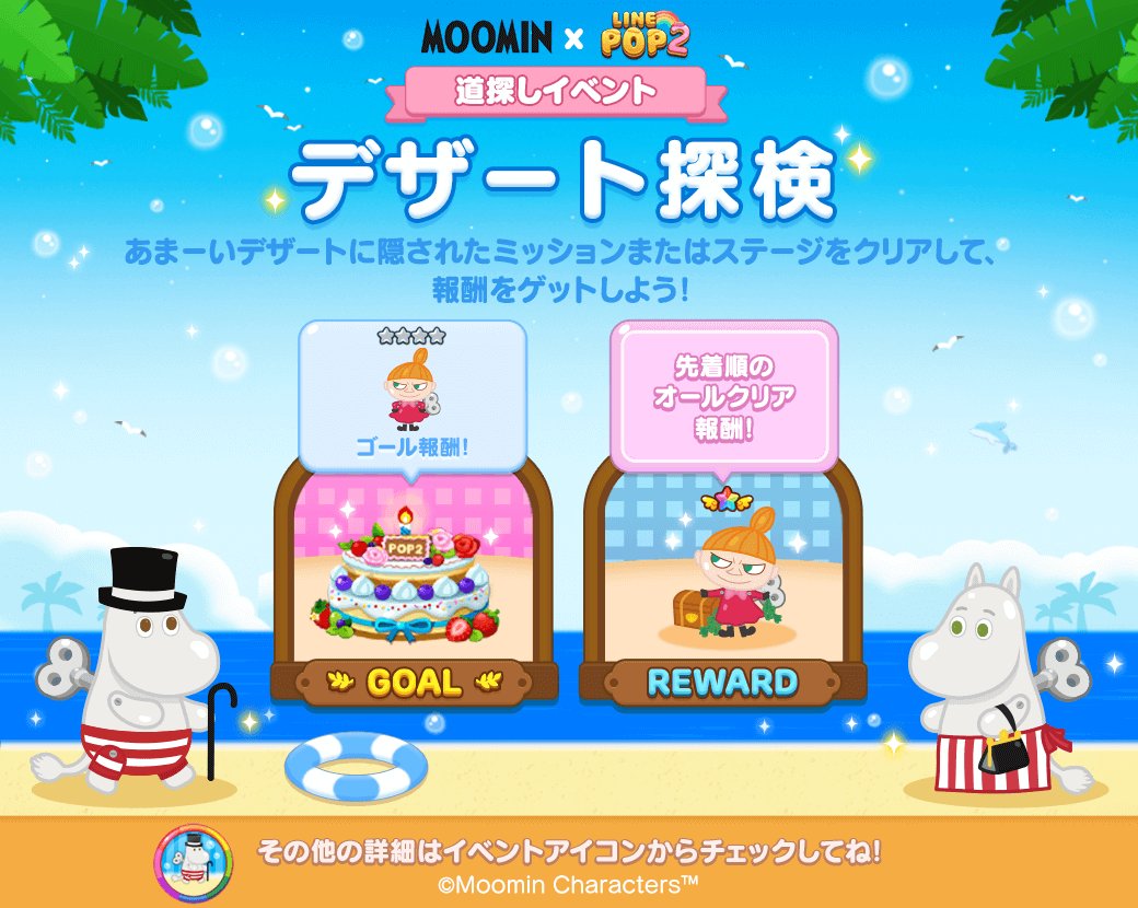 ミッションをクリアすると報酬が獲得でき、次の道へとつながっていく道探しイベントに「ムーミン」のコラボキャラクターが登場します。リトルツインスターズにお菓子をプレゼントしてゴールを目指しましょう。ゴールした報酬として「★4 リトルミイ」がもれなくもらえます。