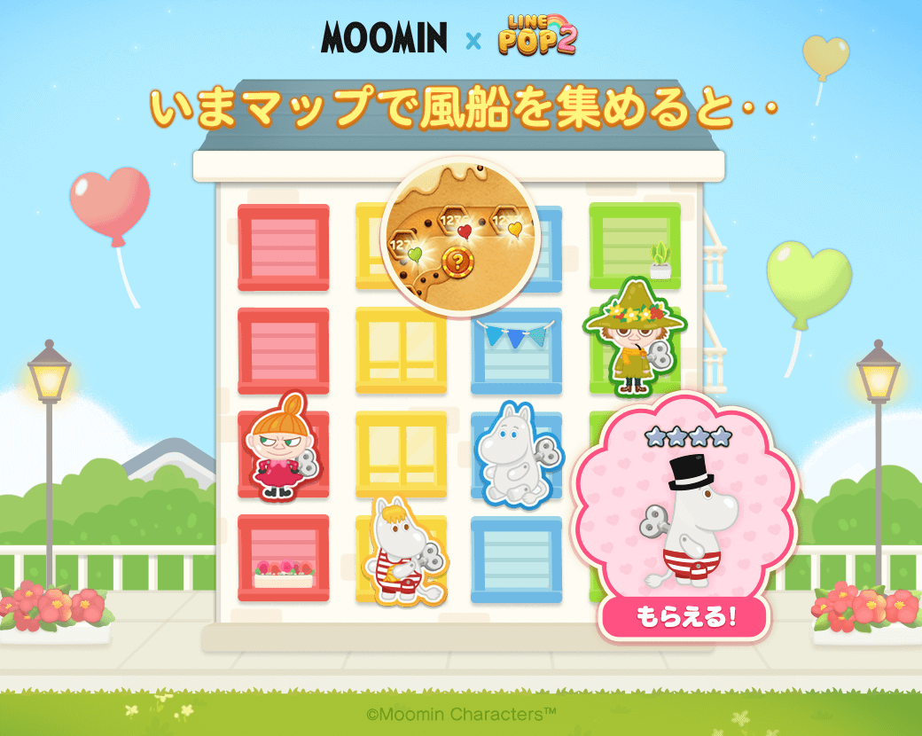 指定されたステージをクリアして風船を集め、風船が一定数に達すると、ゲーム内で利用できるアイテムがもらえます。配達した回数が多ければ多いほど豪華なアイテムが獲得可能で、本コラボにおいては条件をクリアすれば「★4ムーミンパパ」も入手できます。