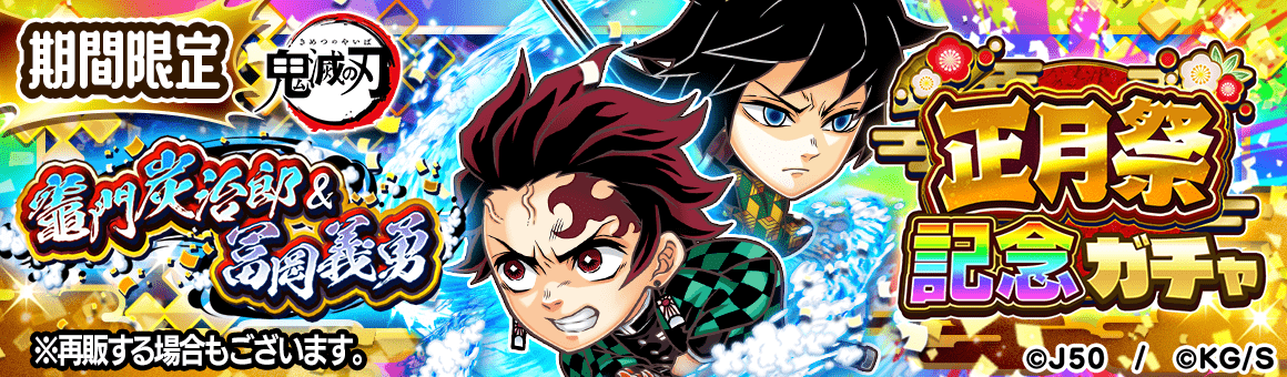 ■正月祭記念ガチャ 竈門炭治郎&冨岡義勇【期間】2022年1月1日(土)0:00~1月12日(水)11:59
