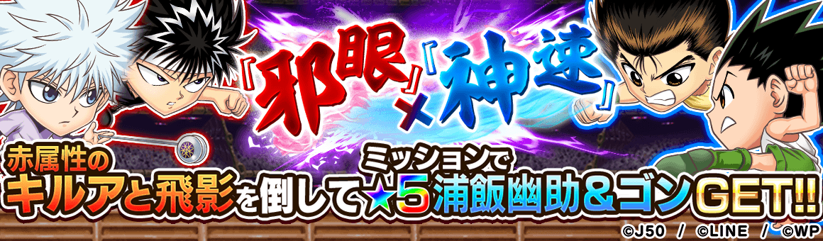友情・努力・勝利!体感プチプチRPG「ジャンプチ ヒーローズ」では、ただいま「ジャンプチ大共闘祭 『幽☆遊☆白書』 × 『HUNTER×HUNTER』」を開催中です!