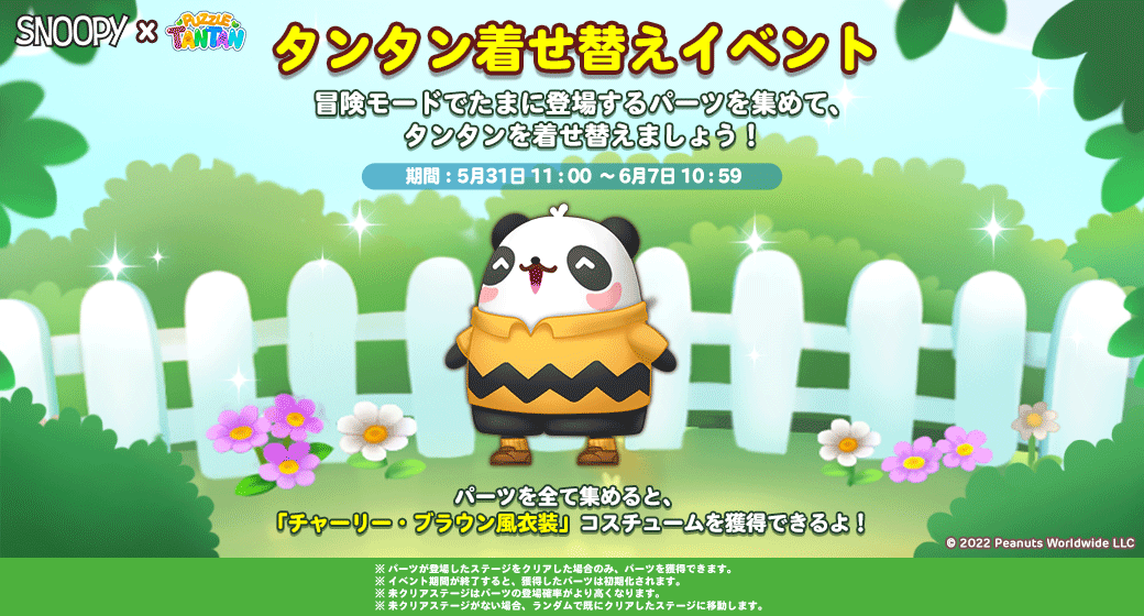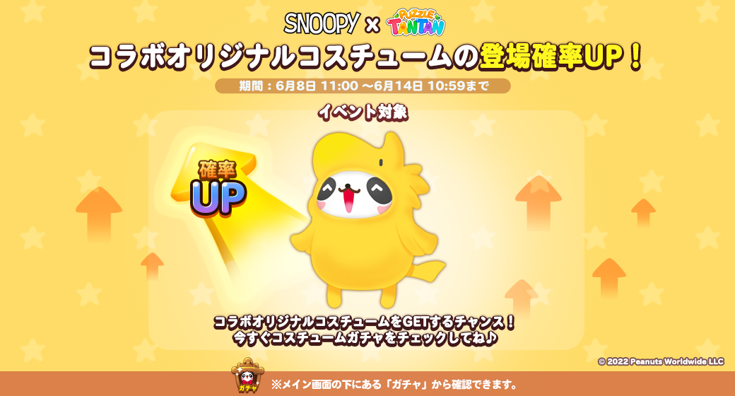 『スヌーピー』とのコラボを記念して、期間限定の特別なコスチュームが登場します!タンタンの着せ替えイベントやコスチュームガチャや限定パッケージにてゲットできます。
