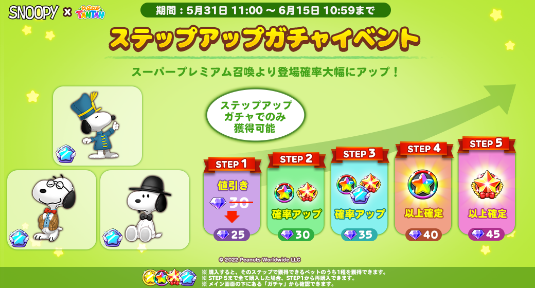 プレミアムガチャとステップアップガチャから『スヌーピー』の仲間たちが登場!期間限定となりますのでこの機会をお見逃しなく!
