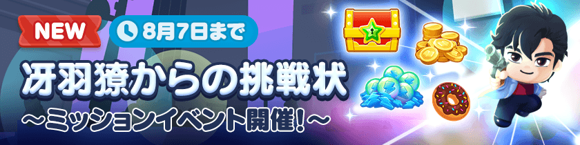 期間中、「冴羽獠からの挑戦状」と「槇村香の特別依頼」のスペシャルミッションを開催します!ミッションをクリアして、スピンやコインなどの報酬を手に入れましょう