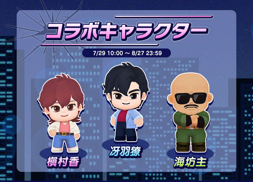 「冴羽獠」や「槇村香」など、おなじみのキャラクターたちが登場します!ぜひ、コラボレーションをお楽しみください!