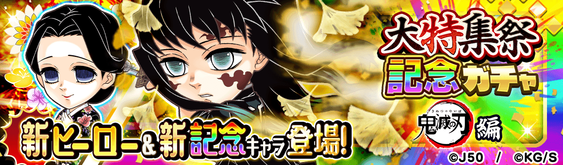 友情・努力・勝利!体感プチプチRPG「ジャンプチ ヒーローズ」では、「大特集祭 鬼滅の刃 鬼滅奇譚百景」を開催中です!