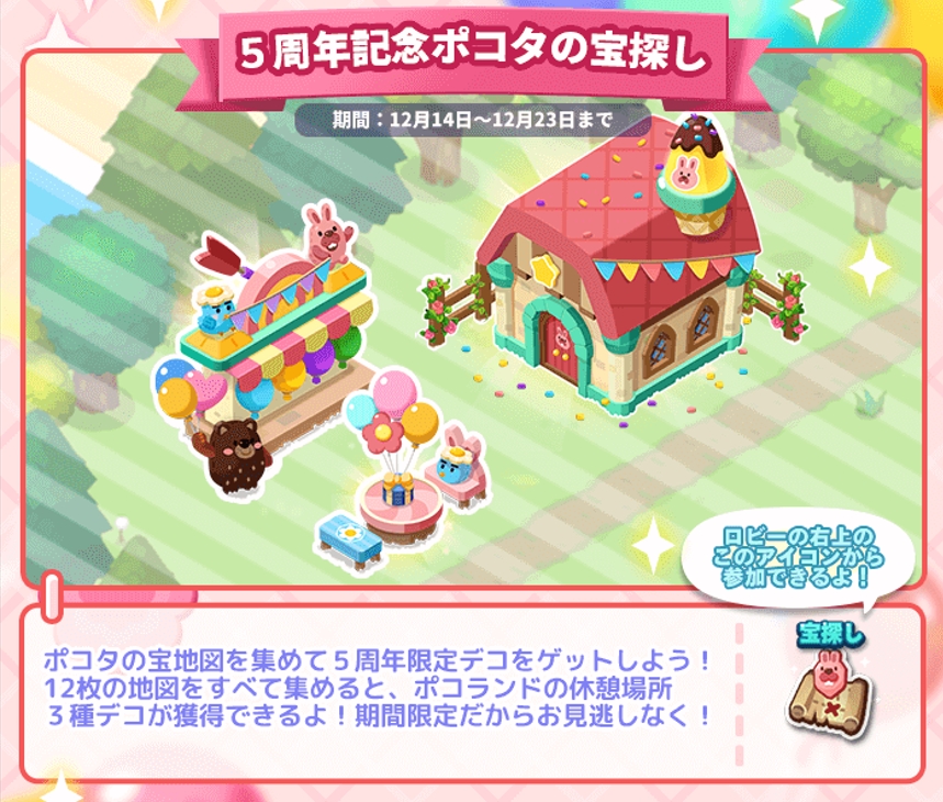ポコタの宝地図を集めて5周年限定デコをゲットしよう!