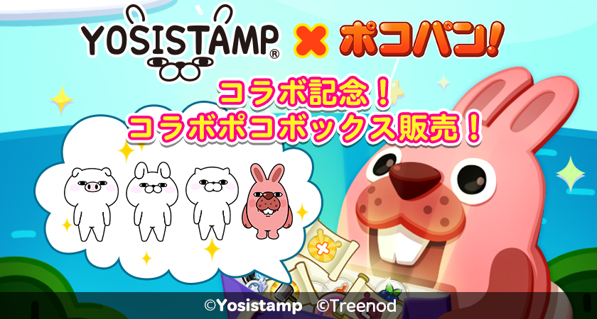 今回はなんと「うさぎさん」、「ひよこさん」のいずれかが獲得できる「コラボパッケージ」と「うさぎさん」、「ぶたさん」、「ぽこたさん」、「ぬこさま」のいずれかが獲得できる「コラボポコボックス」、「くまさん」が獲得できる「コラボえらべるパッケージ」が登場!