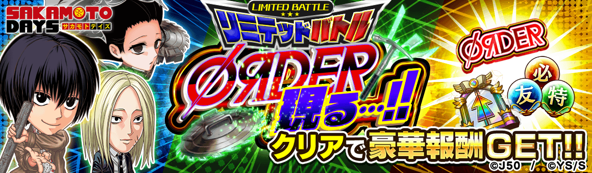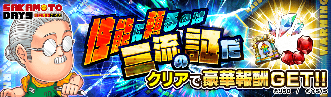 友情・努力・勝利!体感プチプチRPG「ジャンプチ ヒーローズ」では、「ジャンプチ ヒーローズ 祝 リリース2000日!!大特集祭 SAKAMOTO DAYS編」を開催します。