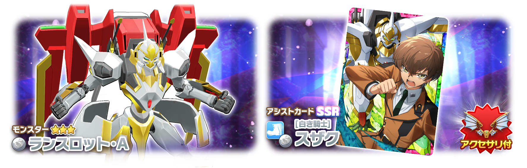 新★3モンスターとして、ヘンガー種となる「ランスロット・A」や新SSRアシストカード「【白き騎士】スザク(ヘンガー)」がピックアップで登場するガチャイベントです。