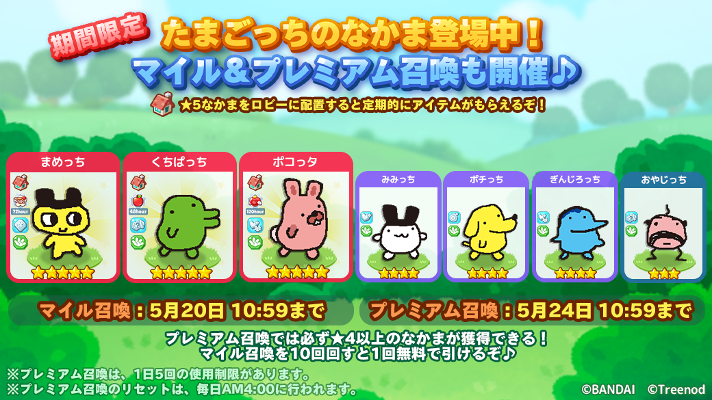 コラボ期間限定で、「★5 まめっち」、「★5 くちぱっち」、「★4 みみっち」、「★4ポチっち」、「★4 ぎんじろっち」、「★5 ポコっタ」がなかま召喚から登場します!