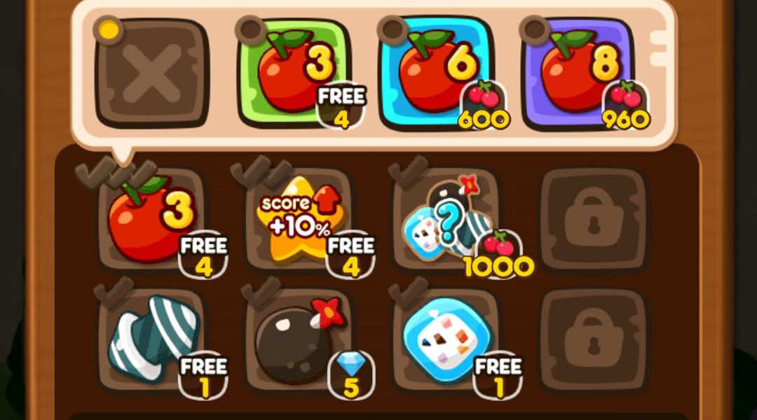 ステージのターン数を増加してくれるりんごが、3段階目までパワーアップすることができるようになりました!