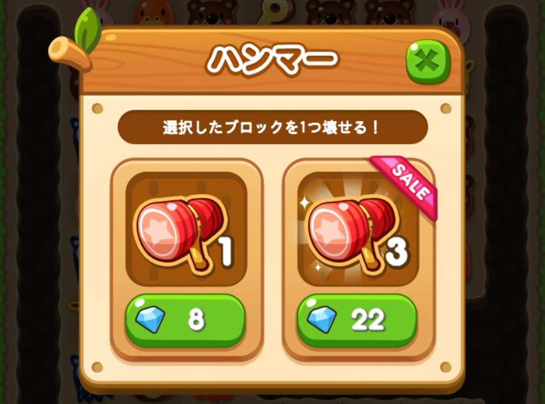 ステージプレイ中に購入・利用できるハンマーなどのプレイアイテムを、1回で3個同時購入できるようになりました!