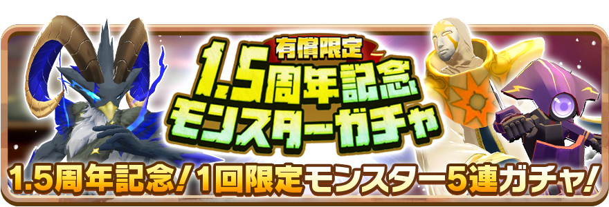 1.5周年を記念して、モンスターが5体確定で獲得可能な有償ガチャイベントを開催します!