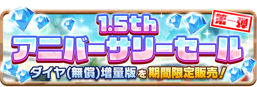 1.5周年は、ダイヤ(有償)を購入した際におまけで獲得できる無償ダイヤが通常時の3倍に増量します!