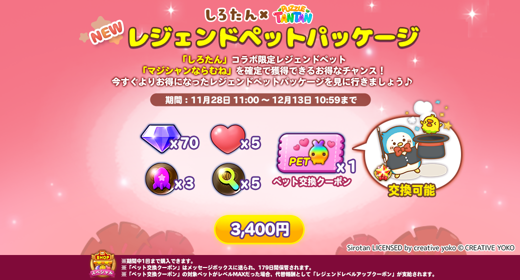各種アイテムと一緒に、レジェンドペットをお得にゲットできます☆