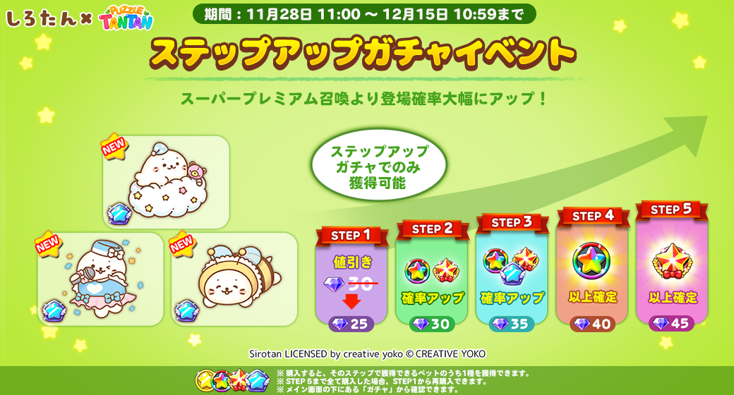 プレミアムガチャとステップアップガチャから『しろたん』の仲間たちが登場します!