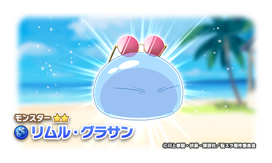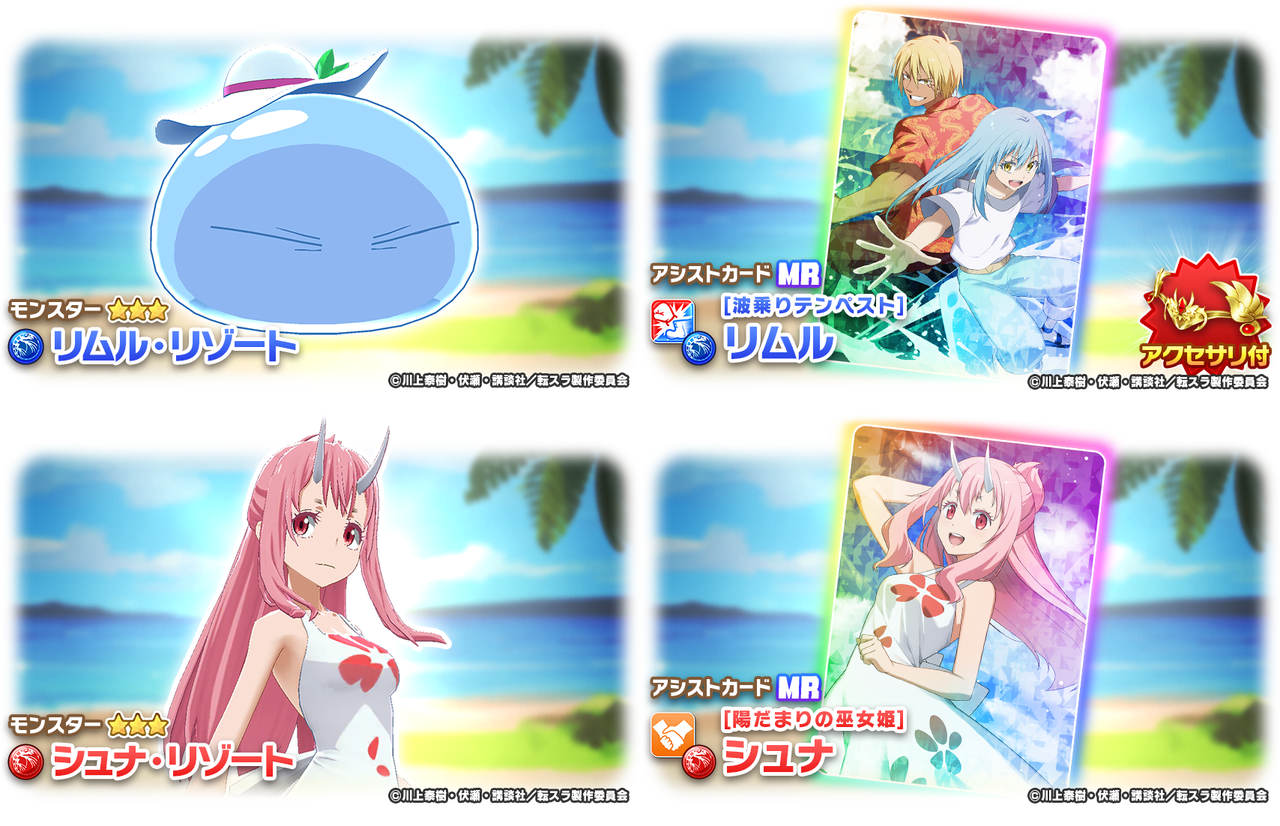 『劇場版 転生したらスライムだった件 蒼海の涙編』コラボ限定のモンスターとアシストカードがピックアップされるガチャイベント「転スラ・リゾートフェス」を開催します!
